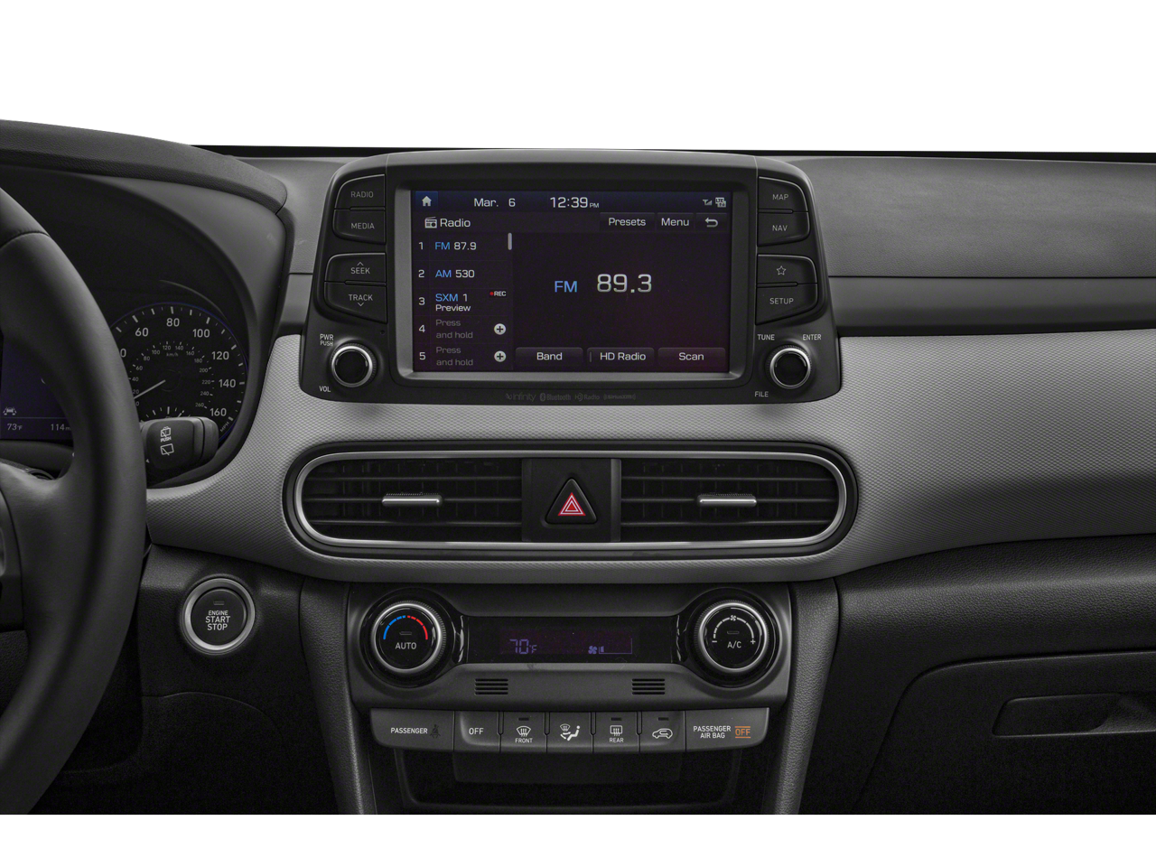 - Radio: AM/FM/MP3/HD Radio/SiriusXM Audio System -inc: 315 Watts, Infinity premium audio w/8 speakers including subwoofer, external amplifier, Blue Link connected car system, Clari-Fi music restoration technology, wireless device charging, Traffic flow and incident data free via HD Radio (HERE), VR, 8" LCD touchscreen display w/navigation, Android Auto, Apple CarPlay, Siri and Google Now support, dual front USB outlets/ auxiliary input jack and Bluetooth®