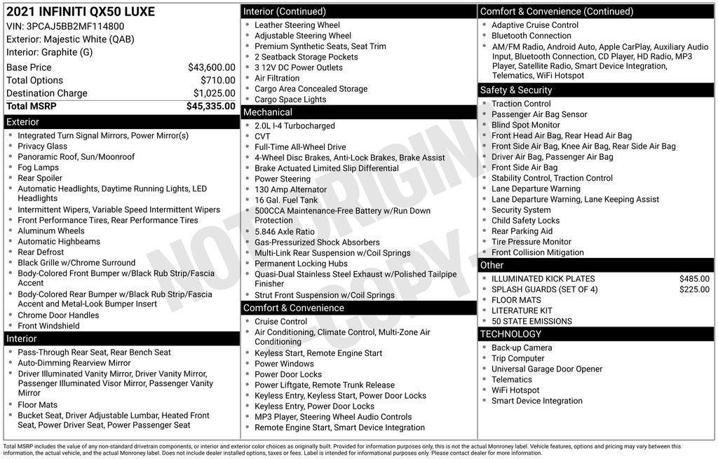 - Vehicle Name: INFINITI QX50