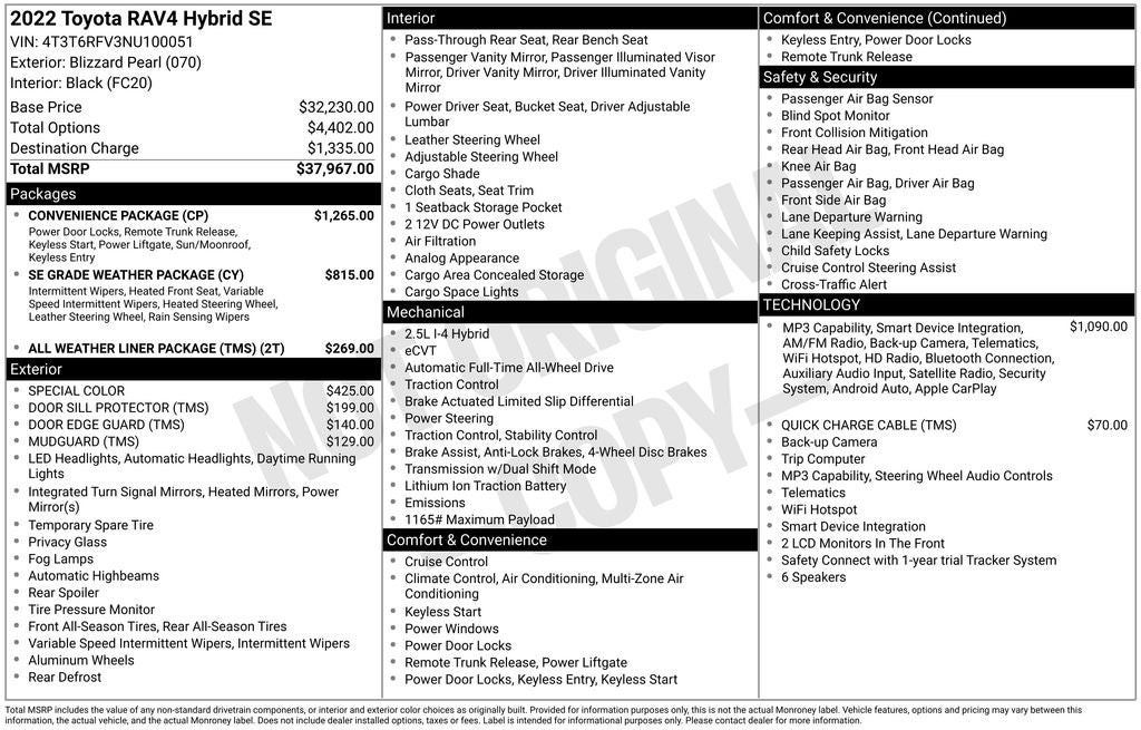 Final price includes Dealer Processing Charge (not required by law):$799.