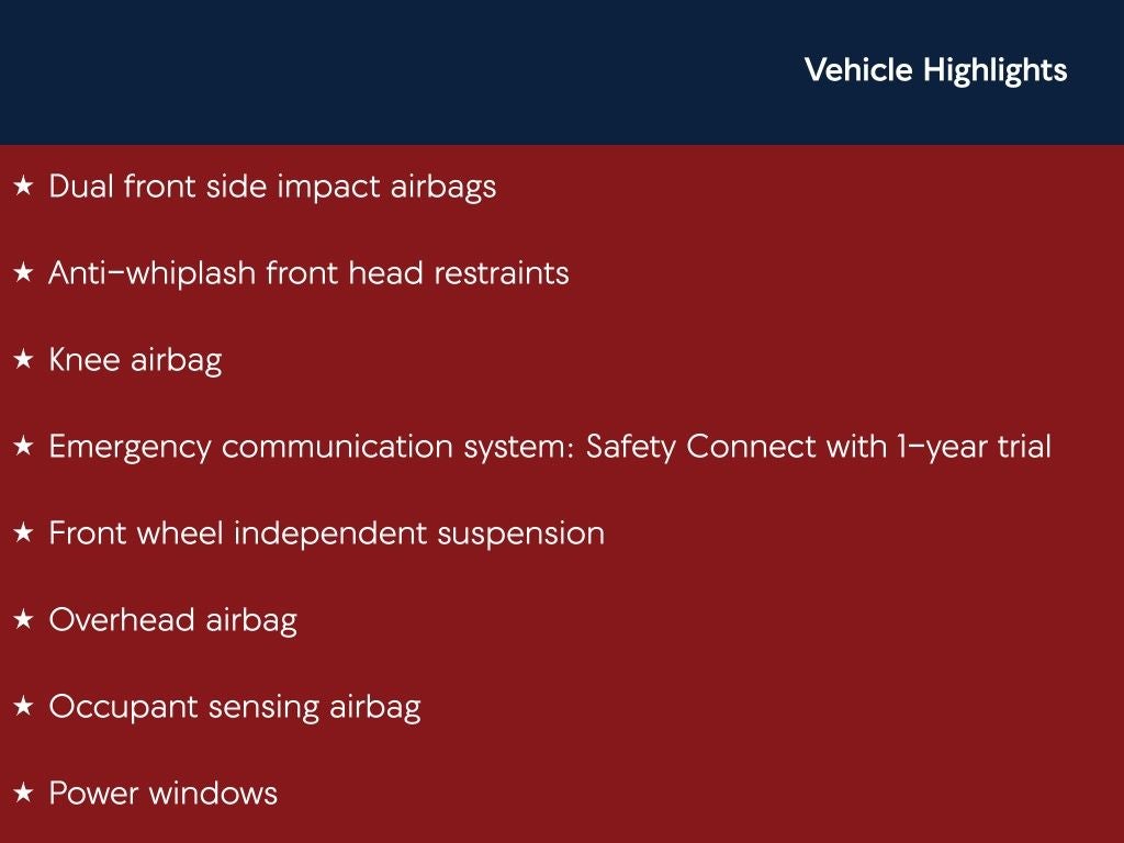 - Emergency communication system: Safety Connect with 1-year trial