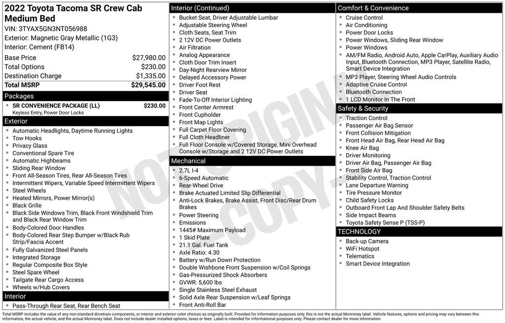 - Vehicle Name: Toyota Tacoma 2WD