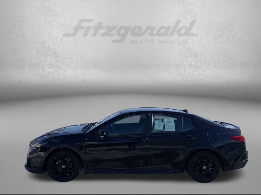 Midnight Black Metallic 2025 Toyota Camry SE FWD eCVT 2.5L 4-Cylinder 16V DOHC 2.5L 4-Cylinder 16V DOHC, black Cloth, 6 Speakers, ABS brakes, Alloy wheels, AM/FM radio: SiriusXM, Apple CarPlay/Android Auto, Auto High-beam Headlights, Automatic temperature control, Brake assist, Bumpers: body-color, Delay-off headlights, Driver door bin, Driver vanity mirror, Dual front impact airbags, Electronic Stability Control, Emergency communication system: Safety Connect (up to 10-year trial subscription), Exterior Parking Camera Rear, Front anti-roll bar, Front Bucket Seats, Front Center Armrest, Heated door mirrors, Leather Shift Knob, Leather steering wheel, Passenger door bin, Power driver seat, Power windows, Radio data system, Radio: Toyota Audio Multimedia w/12.3 Touchscreen, Radio: Toyota Audio Multimedia w/8 Touchscreen, Rear anti-roll bar, Rear side impact airbag, Speed control, Telescoping steering wheel, Tilt steering wheel, Traction control, Wheels: 18 Black-Finished Alloy.