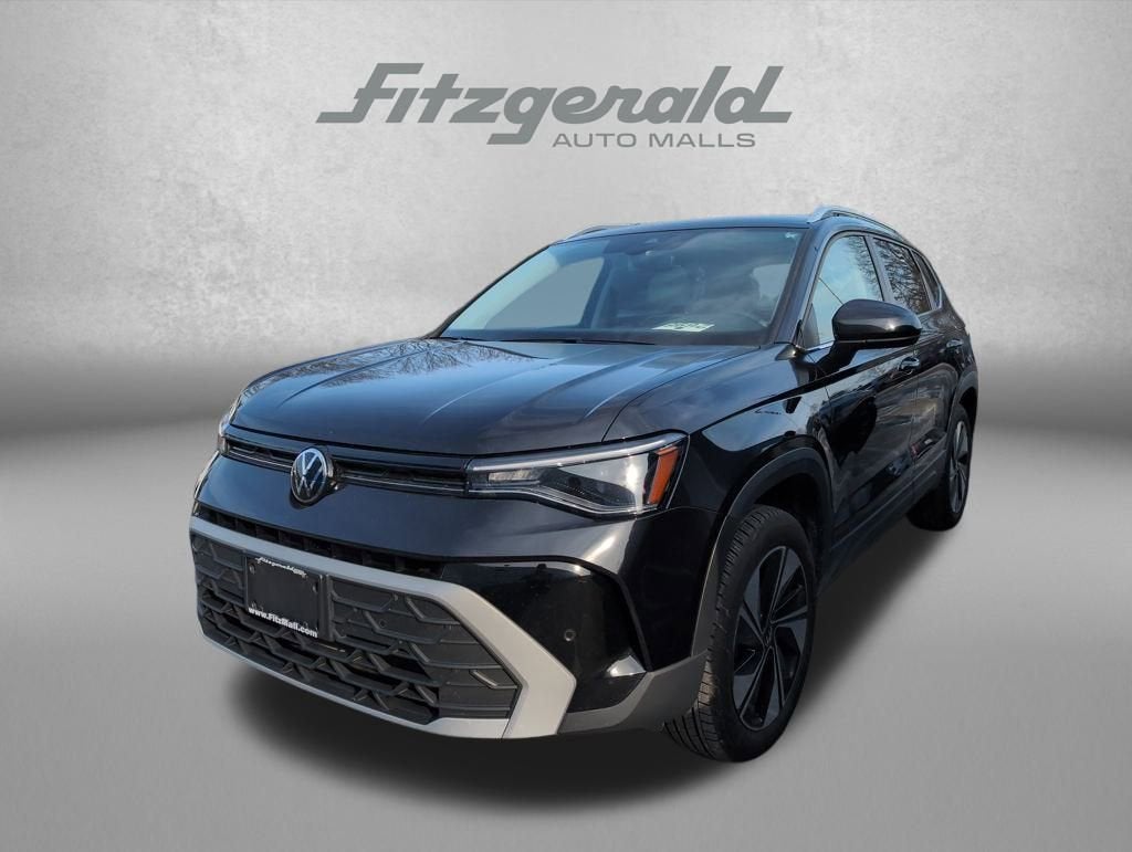 2025 Deep Black Pearl Volkswagen Taos 8-Speed Automatic with Tiptronic 1.5L I4 Turbocharged DOHC 16V LEV3-SULEV30 174hp 1.5T SE Volkswagen Certified Pre-Owned Details:* Vehicle History* Warranty Deductible: $50* Roadside Assistance* Model Year 2020 and Newer Vehicles: 2-Year or 24,000-Mile (whichever occurs first) Comprehensive Limited Warranty. Model Year 2019 Vehicles: 1-Year or 12,000-Mile (whichever comes first) Comprehensive Limited Warranty. Electric Vehicles Model Year 2019 & Newer: 3-Year or 36,000-Mile (whichever comes first) Comprehensive Limited Warranty. 2 Years of 24-Hour Roadside Assistance, Three Months of SiriusXM Platinum Plan Trial Subscription.* 100+ Point InspectionYou will love our NO HAGGLE, NO HASSLE PRICING here at Fitzgerald Auto Mall. Ask us about our BUYER PROTECTION PLAN, LOANER CAR PROGRAMS, AND FREE Vehicle History Report. Can not find what you want?? NO PROBLEM! We have over 1,000 Pre-Owned vehicles available at WWW.FITZMALL.COM. You can also visit us in person at 114 Baughmans Lane Frederick MD, 21702 or Call Us @240-629-7301.