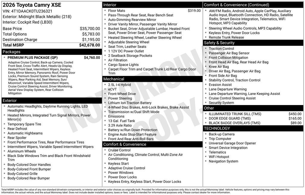 2026 Toyota CAMRY XSE